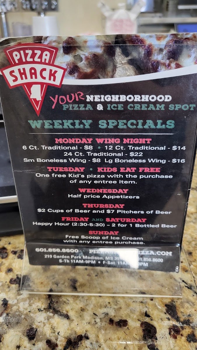 Welcome to Pizza Shack - Madison, a charming eatery nestled at 219 Garden Park Dr, Madison, MS. This cozy spot is revered for its delicious, generously topped pizzas that cater to diverse palates. Whether you’re indulging in a classic cheese or a delightful veggie option, each bite offers vibrant flavors that keep customers coming back.